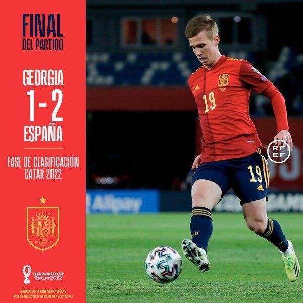 90vs体育讯 北京时间2021年3月29日00:00(格鲁吉亚当地时间28日20:00),2022世界杯欧洲区预选赛B组第2轮一场焦点战在第比利斯的国家球场展开争夺,西班牙客场2比1险胜格鲁吉亚,费兰-托雷斯扳平,奥尔默补时绝杀。